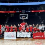 アスリートたちはアルバルク東京の選手たちからの応援メッセージをもらい平岩玄選手(中央)と記念撮影