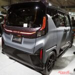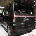 ボディカラーはムーヴ クロメキ同様のマット調ブラックを基調とした専用色を採用。リアには、トヨタ「ヴォクシー」に似た、左右のテールランプ間を結ぶ2本のラインライトが配置され、後ろ姿にも強い個性を与えています。インテリアも市販モデルをベースとしながら、黒を基調としたカラーコーディネートにパープルの差し色を巧みに組み合わせ、質感の高さを強調。派手な演出であるものの、下品さを感じさせないバランス感覚は、量産メーカーらしい仕立てです。