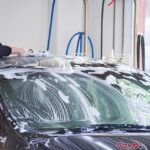 十分に水をかけたら、カーシャンプーを泡立て、その泡をクッションにしながら、スポンジでやさしくなでるように洗いましょう。泡がスポンジとボディの直接接触を和らげることで、洗車時のキズ発生を抑えます。汚れが残る場合でも、無理に落とそうとせず、水で流しながら汚れの残り具合を確認してください。カーシャンプーをボディに噴霧して1〜2分放置する「プレフォーミング洗浄」は、汚れを効果的に浮かせることができるため、おすすめです。