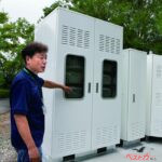 EVトラックの使用済みバッテリーを再利用して、EV用充電器と一体型の蓄電池を開発し、2025年2月から京都府向日市役所で実証実験を開始したCONNEXX SYSTEMS株式会社(京都府相楽郡精華町)。