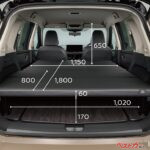 最大の特徴は、走行性能に優れるSUVに「泊まれる」機能を付加したこと。日産は商用ミニバンの「キャラバン」にも車中泊仕様の「キャラバン マルチベッド」を設定していますが、エクストレイルマルチベッドのベッド展開時の最大奥行きは約1800mm、最大幅は約1150mm、ベッドマットから天井までの高さは約650mmと、身長が高い人にとっては余裕があるとはいいがたい奥行。幅も一般的なセミダブルベッドよりやや狭い水準です。キャラバンの奥行き1760×幅1510と比較すると、ベッドの広さではやはりミニバンのほうが理にかなっています。