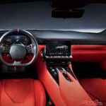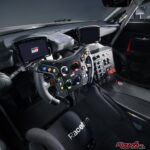 ヒップポイントも限界まで下げられており、それに合わせ、メータークラスターや空調ユニットも小型化。コクピット全体が低全高前提で設計されています。さらにフロントスプリッター、大型リアディフューザー、ボディ側面のエアアウトレットなど、空気の流れを制御する造形も随所に盛り込まれており、冷却効率とダウンフォース確保を両立させるため、ラジエーターやインタークーラーもコンパクト化されています。