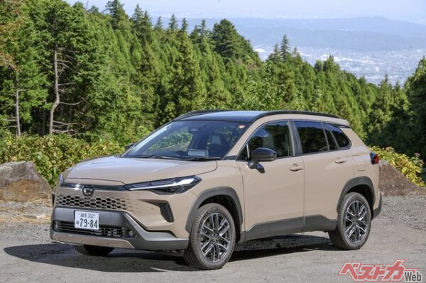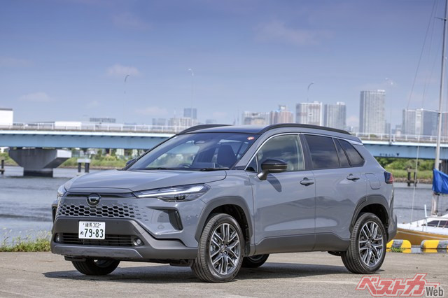 2025年5月の一部改良で、フロントマスクが大幅に変わったカローラクロス。とくに、グリル形状の変更やヘッドランプの刷新が目立つ。