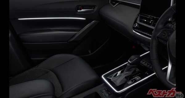 カローラクロスはランプ類がフルLED化されている点が特徴だが、Zグレードは、フロントアッパーモール部にまでLEDライン発光のクリアランスランプが標準装備として配置された。