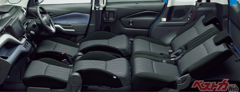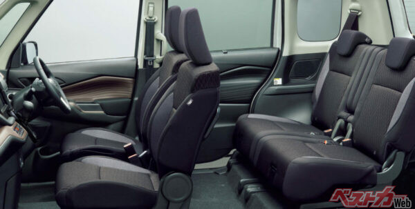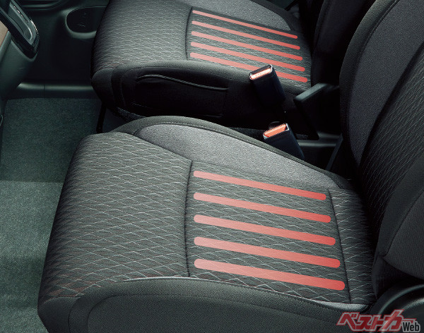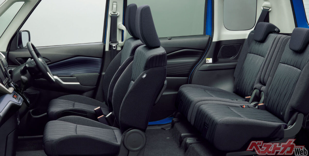 リアシートは5:5分割可倒式。ソリオもソリオ バンディットもファブリックシート表皮。画像はソリオ バンディットの内装。