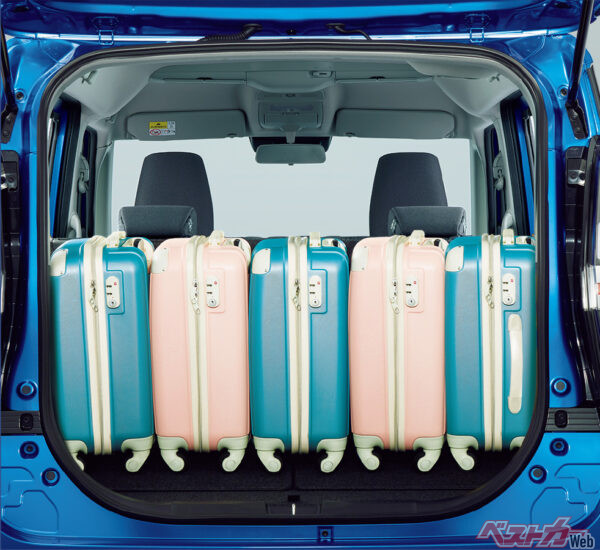 スーツケースは35Lのものがおおよそ5個積むことができる。開口幅は最大1075mm、開口高は980mm、荷室開口地上高は665mm。