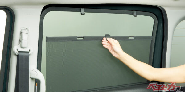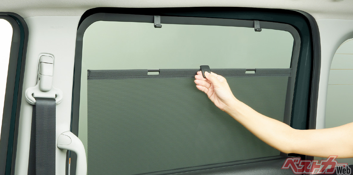 HYBRID MGグレード以外にはロールサンシェードをリアドアに内蔵。
