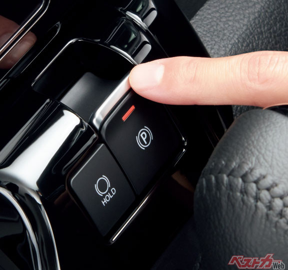 2025年の一部改良では、電動パーキングブレーキとブレーキホールドを採用。停車中、ブレーキペダルから足を離しても停車状態をキープできる。