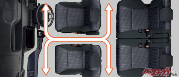運転席と助手席にはシートヒーターを搭載。「リヤヒートダクト」もあるので、後席の足元へ温風を送り込むこともできる。
