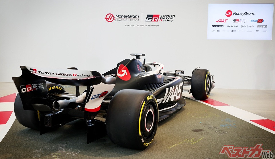 これはレース用エンジンのパワーを確実に路面に伝えるためと、そのパワーに負けないグリップ力を得るのが目的だ。