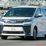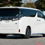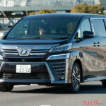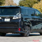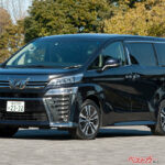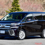 トヨタ ヴェルファイア(2代目・2015年登場)。コワモテのデザインに加え、全長4935×全幅1850×全高1935mmの堂々としたボディサイズを持つ