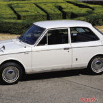 初代トヨタ カローラ(1966~1970年)。パブリカとコロナの間を埋める車種として登場。一般大衆の虚栄心を巧みに刺激した秀作
