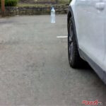 次にそのペットボトルに車体左側を寄せるつもりで、ゆっくりとクルマを前に動かしてみよう。ボトルがボンネットの死角に隠れて見えなくなった瞬間に、クルマを止める。一度外に出て確認すると、タイヤとボトルの間には意外なほど「まだ寄せられる」隙間があるはずだ。これを繰り返し、タイヤのサイドウォールがボトルに触れるか触れないかの「超ギリギリ」まで寄せてみる。この「死角に入ってもそこにあると信じられる」感覚こそが、車幅感覚の正体だ。