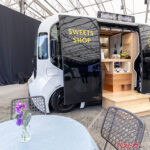 eパレットの室内空間を活用すれば店舗としての利用もご覧のとおり。棚や机をしっかり車内に収容できるのはもちろん、広い開口部のおかげで設営もラクラク。これなら移動型店舗としての利用も苦しくなさそう。