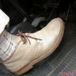 こうしたスムーズかつ精細なブレーキコントロールを操作することを可能にしているのが、かかとを床につけてブレーキペダルを踏むことである。この踏み方は、アリさんブレーキに必須のテクニックで、急激な減速を避けながら、じわじわと速度を落としていく操作のこと。
