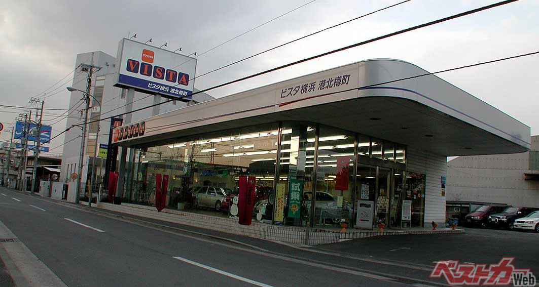5世代21年の歴史に幕が下りたのは2003年のこと。翌2004年にトヨタは国内販売を4チャネル制へ移行し、ビスタ・オート店はネッツ店として生まれ変わった。チャネルからも車名からも、「ビスタ」の名は消えている。