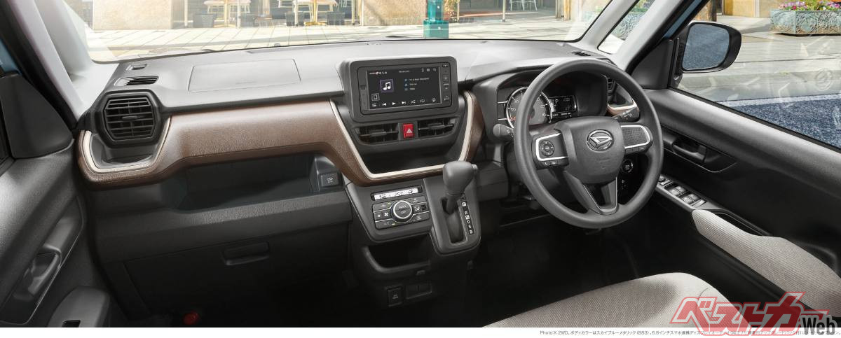それでもムーヴが強いのは、安さの中身がかなり真っ当だからだ。現行型はスライドドアを採用し、SMART ASSISTを用意。さらに6.8インチあるいは9インチのスマホ連携ディスプレイオーディオも設定され、今どきの軽に欲しい要素をしっかり押さえている。