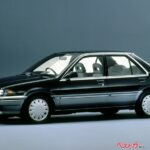 日産はパルサーをベースに、ハッチバックながらスカイライン風のボディデザイン、そしてヘッドライトはなんとC210型スカイライン後期型のものを使った初代ラングレーをデビューさせた。