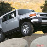 「オフロードにおける運動性能を念頭に置き、ショートオーバーハング、ショートホイールベースのディメンションを採用した」とトヨタが言うFJクルーザーのアプローチアングルは34度で、ディパーチャーアングル27度、ランプブレークオーバーアングルが28.5度。