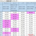 2010年以降の登録台数を比較すると、2010年はステップワゴンがかろうじてトップを獲得するが、2010年11月にモデルチェンジした先代のC26型セレナが、2011年~2013年に渡り他を寄せ付けない強さを誇る。