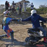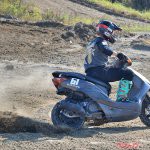 スクータークロスとはその名のとおり、足を揃えて乗るタイプのバイクでオフロードを走るレースだ。細かい規則はなく、排気量も自由。