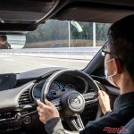 筆者は今、「MAZDA CO-PILOT CONCEPT2.0」を搭載したプロトタイプモデルを運転しています。場所は高速道路に見立てたテストコースの高速周回路。80㎞/hで巡行中です。