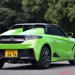 S660はルーフトップのみが外せるいわゆるタルガトップなのに対し、ビートはソフトトップのルーフ全体が開くフルオープンということもあり、斜め後ろから見た際のボリューム感がまったく違う。