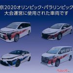 その内訳は、初代MIRAI約500台、プリウスPHV約500台、ノア/ヴォクシー約300台、ノア/ヴォクシー(ウェルキャブ)約150台のほか、RAV4やハイラックス、バッハ会長をはじめVIPの送迎などに使われたアルファードやレクサスESなども使用されている。