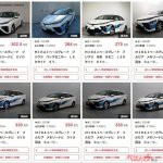現在、中古車として流通しているのは、旧型のMIRAIをはじめ、プリウスPHV、ノア、ヴォクシー、アルファードののほか、RAV4やハイラックス、黒塗りのレクサスESは5台以下となっている。