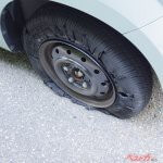 撮影された動画の撮影周期とタイヤの回転周期が一致すると、タイヤは静止しているように見える。(PHOTO:写真AC_ Laboko)