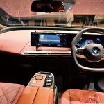 iX3はインテリアなども含めて基本はX3なので、これまでのBMW車の雰囲気を感じさせるが、iXは液晶パネルで構成されたインパネや、2本スポークのステアリング、そしてシフトレバーを廃した操作系など、これまでのBMW車とはガラリと変化。革新を感じさせる佇まいだ。