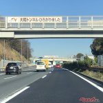 大和トンネル付近は、上下線ともに、サグ(くぼ地)効果による自然渋滞の発生ポイントとして名高いが、NEXCO中日本はその対策として、付加車線の建設を進めてきた。そのうち大和バス停よりも西寄りの区間(計画の半分程度)が、2021年7月に部分開通。これによって、上り線の渋滞は解消された。