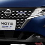 ノートAUTECHをベースに、車高を25mmほどハイリフトし、大径タイヤと専用16インチホイール、樹脂フェンダーモール、ルーフモールド、そして前後にクロスオーバー専用エンブレムを装備、という内容で登場したノートAUTECHクロスオーバー。インテリアには、縫い目のないダイヤモンドキルトを施したシート表皮や、至るところにAUTECHのイメージカラーであるブルーのステッチがあしらわれ、モダンでオシャレな空間に仕上げられている。