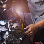 昔はリキッドタンク(レシーバータンク、リザーバーとも呼ばれる)に液化された冷媒が確認できるサイトグラスというガラス窓が組み込まれていて、そこで冷媒の充填量をチェックできた。