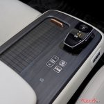 木目調パネルに浮かび上がるエアコンのハプティクススイッチは、必要なときには現れ、不要なときには形を消す。スイッチ部分を押すと、運転中でも振動で操作感が伝わるようにもなっている。またセンターコンソールにあるモード切り替えスイッチも、押すと振動するタイプだ。