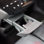 しかし、やはり操作性はイマイチ。温度調節をする場合、このスイッチを何度か押すことになるのだが、指を引っかける凹凸がないなかで、平らな面にあるスイッチを押すのは、なかなか難しい。特に、運転中のように身体が揺れてしまう車内では、スイッチ部が押すと振動してくれるとはいえ指先が定まらず、周りのインパネに手をついたうえで、探りながら押すような操作となる。