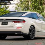 エクステリアは流麗な形状のファストバックプロポーション。フロントオーバーハングは155mm長くなり、対するリアオーバーハングは65mm短くなった。ボディサイズは全長4930mm(+20mm)×全幅1840mm(+40mm)×全高1540mm(+85mm)(※カッコ内は現行型クラウン比)である。