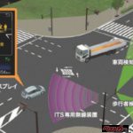「ITSコネクト」の右折時注意喚起機能。接近している対向車や歩行者がいるにもかかわらずドライバーが発進しようとした場合に、表示とブザー音で注意喚起をし、安全に右折できるよう支援してくれる