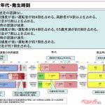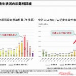 こちらも冒頭でも触れたが、逆走事案で最も多い年齢層は、75~79歳の高齢者。免許人口当たりでは、75歳以上で逆走する割合が高く、85歳以上の割合が最も高い。