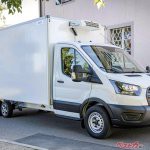 フォードの小型商用車・トランジットをベースとした冷凍バンで、大型トラックのように後輪がタンデム2軸となっている。