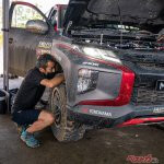 参戦マシンに選ばれたのは、三菱が地元タイで生産するピックアップトラック「トライトン」。堅牢なシャシーフレーム構造でありながら優れたハンドリング性能を持ち合わせている点が特長で、今回は改造クロスカントリー車両部門となるT1クラスに3台が投入された。6月から現地での耐久テストも行いセットアップや対策を確認、仕上がりも万全だ。