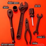 「お~い。そこのスパナ、渡してくれよ」(整備士A)。「この茶色いモノですね!」(整備士B)。「小腹空いたから食べようかな」(整備士A)。「ええッ! なぜ食べてるんスか、スパナとレンチを」(整備士B)。……整備士Bさんが見紛うのもムリはない。これらは工具ではなく「チョコレート」なんです!!