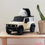 軽ジムニーウェットティッシュケースの価格は5,500円(税込)。ボディカラーは3色あり、キネティックイエロー、シフォンアイボリー、ジャングルグリーンという実車と同様のカラーリングがチョイス可能だ。しかも今なら先着100名様に、歴代ジムニーのイラストが描かれたA4サイズの塗り絵トートがオマケに付く。自分で色を塗ってオリジナルエコバッグとして使ってもいいだろう。寝ても覚めてもジムニーのことばかり考えているあなた! これはポチるに限るでしょ!