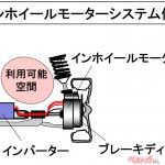 一方で実用化に関しては課題も多く、IWMはモーター/インバーターの数が増えるのでコストアップは避け難く、さらに搭載スペースと重量の制約の中で、高効率・高出力のモーター/インバーターが求められます。また、モーター本体に直接路面からの衝撃が伝わるため、モーターには高い耐久性や浸水対策、ブレーキと隣接するため熱対策も必要です。バネ下荷重が重くなるため、サスペンションの振動吸収能力が低下して乗り心地が悪化すること、そのために専用のサスペンションを用意しなければならないことなども実用化に向けては解決しなければならない課題です。