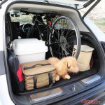 最後は、愛犬といっしょにZR-Vでデイキャンプに出掛けたという設定。現地での行動範囲を広げるために、リアシートはたたんで自転車も積んでみた。