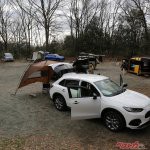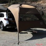 いっぽう不安だったのが自転車。ZR-Vに積めるか心配だったが、700(mm)×26Cのタイヤを履くクロスバイクが前輪のみ外して見事に収まってしまった。「盗難や雨風が不安だから自転車は車内に積みたい」というユーザーは少なくないから、この展開はうれしい。リアのハッチゲートを開けてカーサイドタープをも固定してみたが、テーブルやチェアも含めて余裕で詰め込めた。愛犬がいない人は自転車を2台積みして、友人やパートナーと日帰りライドを楽しむのもいいだろう。