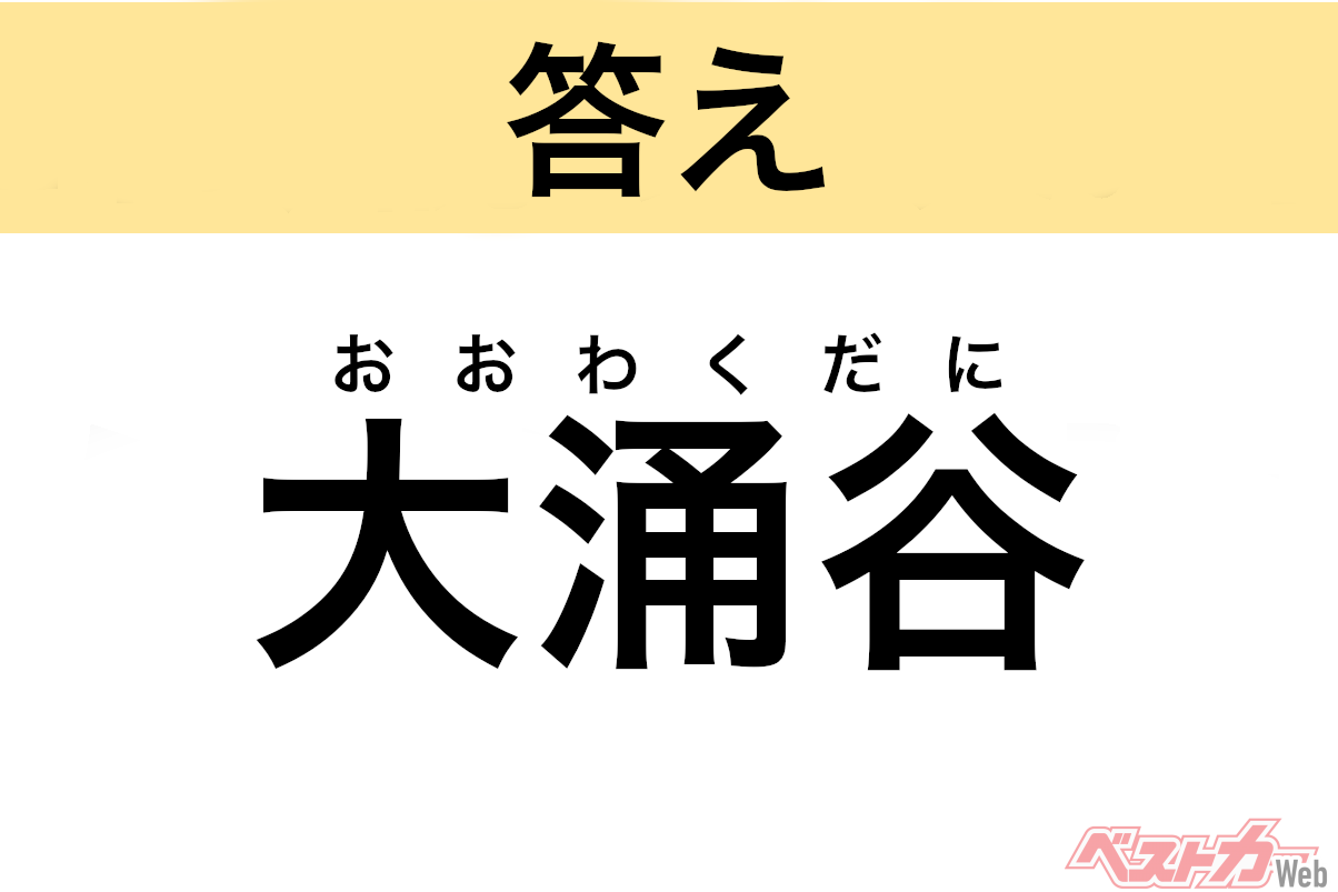 大涌谷と書いて、「おおわくだに」と読むのが正解。地名を知らない人なら「おおわきだに」と読みがち。大涌谷は箱根火山の活動を近くで見ることのできる観光地で、温泉の成分を利用した卵、「黒たまご」で有名です。