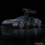 2ドアクーペだけに、アルファ5と比べるとオリジナルに近い感じはする。DMC-12は車体のウエストラインを黒い樹脂パーツが一周していたが、JZDでは代わりにLEDが全周に埋め込まれているし、アルファ5同様ガルウイングドアを採用している点もオリジナルと共通だ。ちなみにこちらはイタルデザイン設計ではなく、ブガッティ リマックも手がけたスペイン人アンヘル・ゲーラのデザインだという。