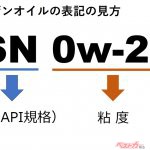粘度と一緒に表示されているSJなどS○の二文字(ディーゼル用はC○)はAPI規格と呼ばれるもので、オイルの環境性能など時代が要求する性能をクリアしているかを表している。