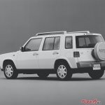 さらに、充分な対地障害角を確保するには大径タイヤの装着は必須である。これを普通の乗用車のようにトランク(荷室)フロアの下にタイヤを収納すると、荷室空間が確保しづらくなる。このような実用面においても、背面にスペアタイヤを装着はメリットがあった。